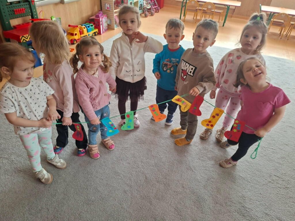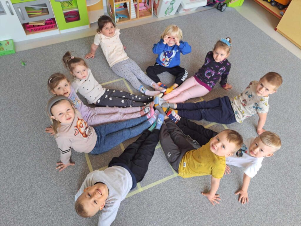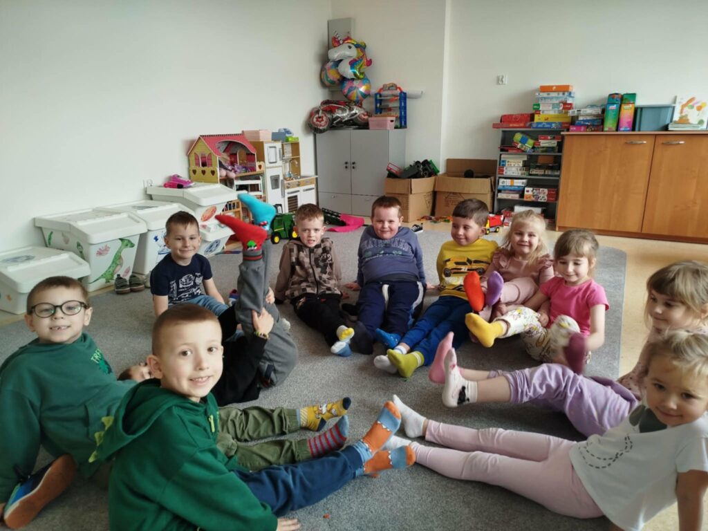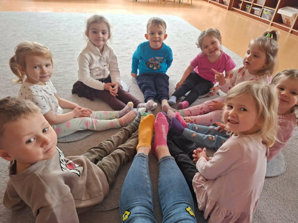Dnia 21 marca w naszym przedszkolu obchodziliśmy Światowy Dzień Zespołu Downa. Tego dnia dzieci przyszły w kolorowych, nie do pary skarpetkach, które są symbolem akceptacji, różnorodności i solidarności z osobami z zespołem Downa. Podczas zajęć rozmawialiśmy o tym, jak ważne są szacunek, empatia i życzliwość wobec innych. Dzieci brały udział w zabawach integracyjnych oraz wykonywały prace plastyczne związane z tematyką dnia. To był wyjątkowy czas, który pomógł naszym przedszkolakom lepiej zrozumieć, że każdy z nas jest inny, ale wszyscy jesteśmy równie ważni.