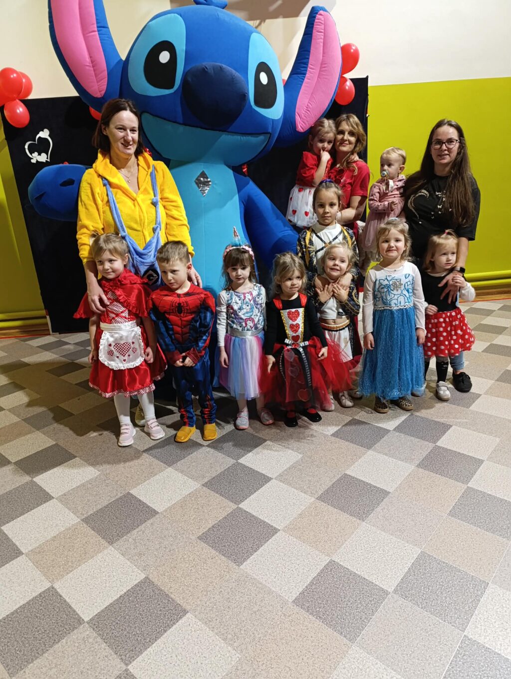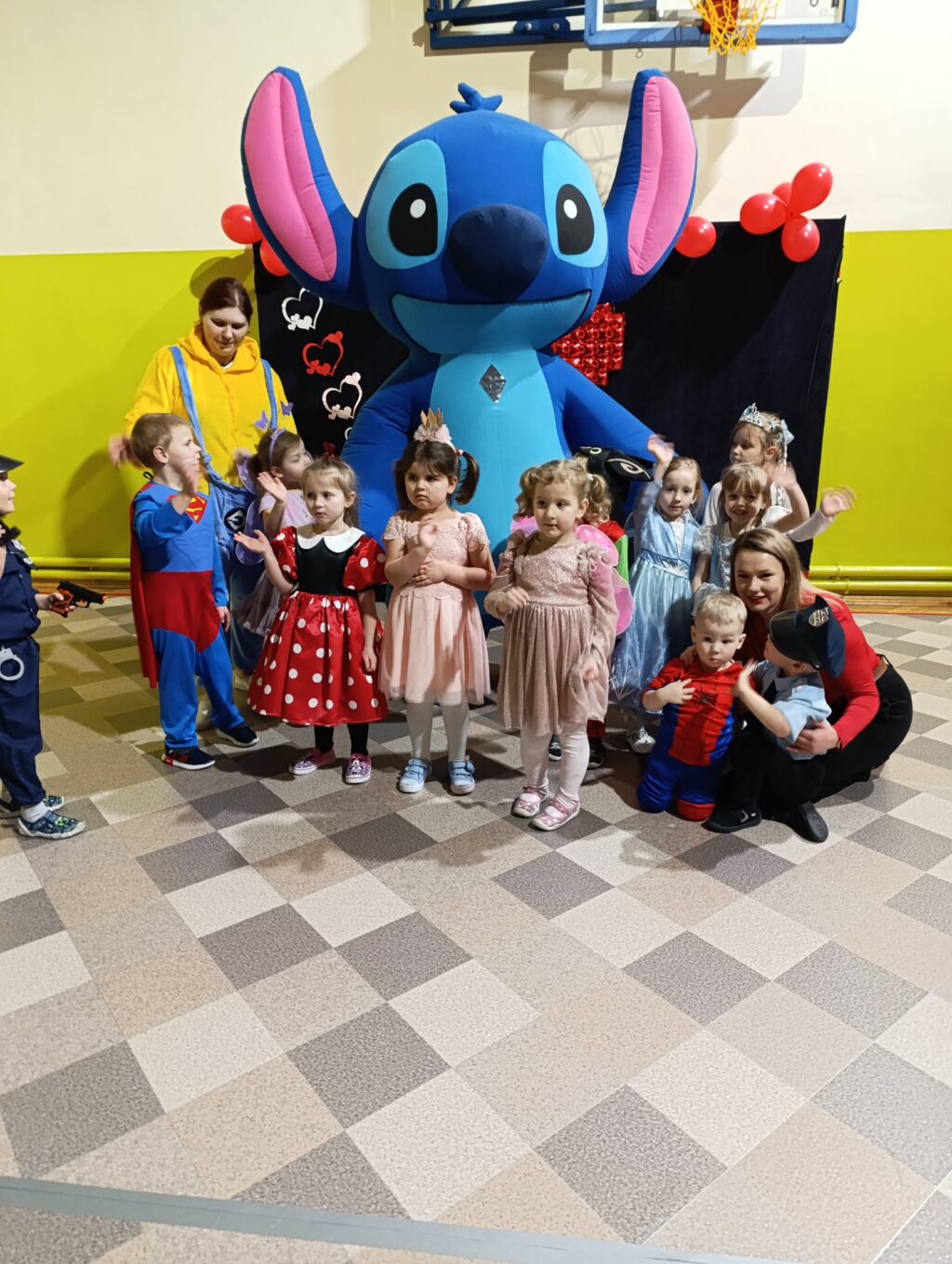 Ogromną niespodzianką była wizyta maskotki Stitch. Gość specjalny chętnie pozował do zdjęć, przybijał piątki i zapraszał do wspólnej zabawy dzieci i rodziców.