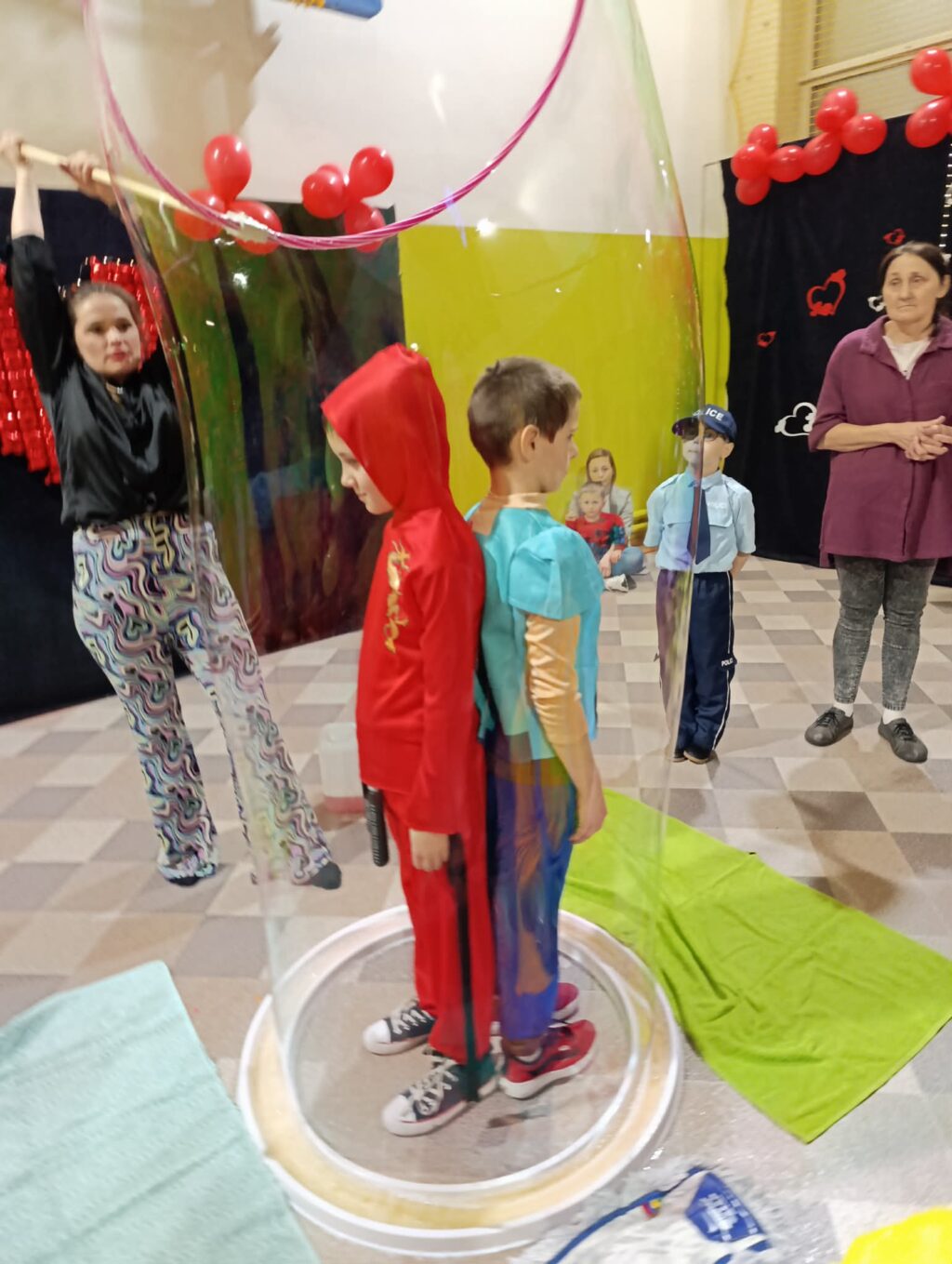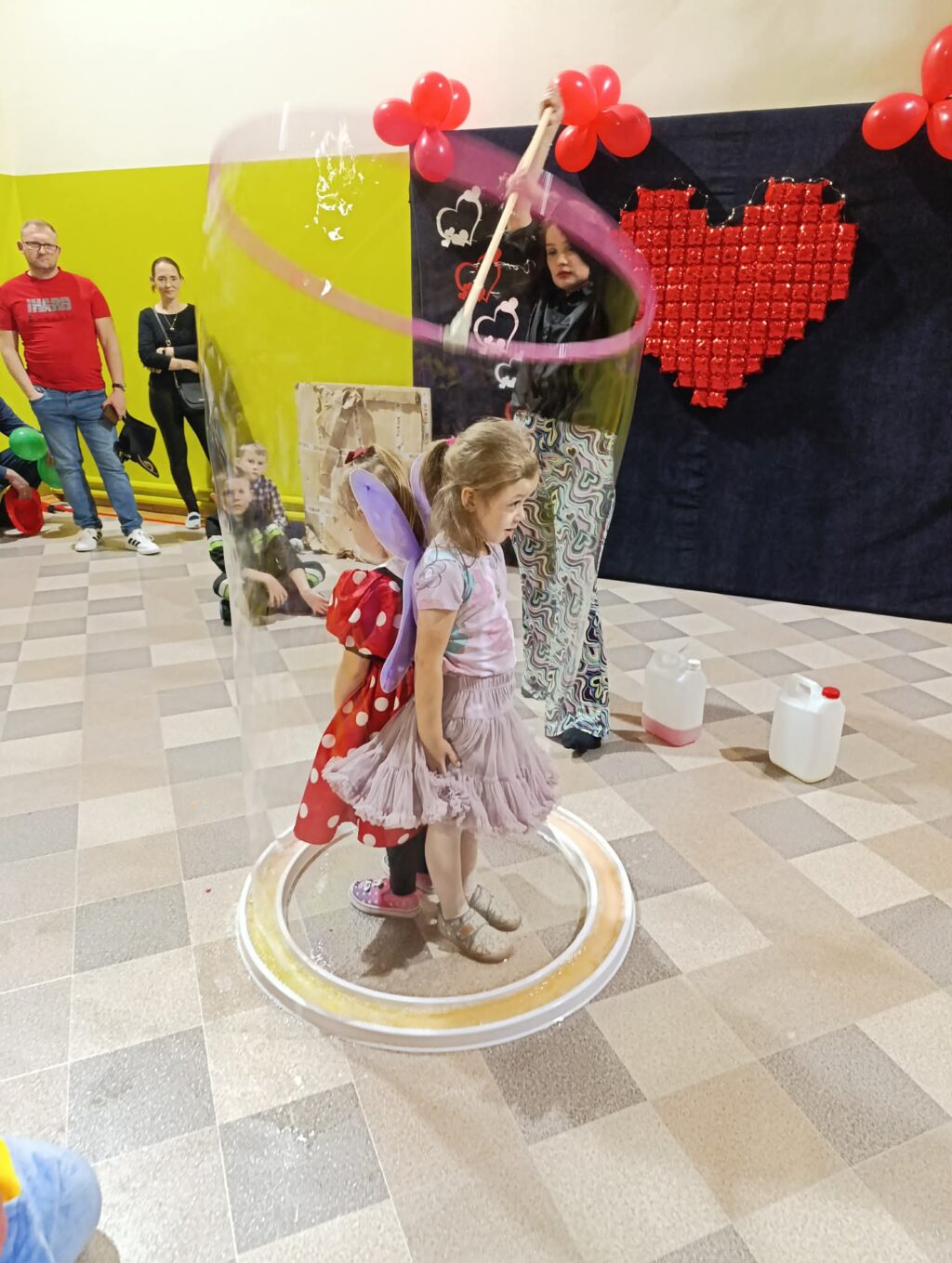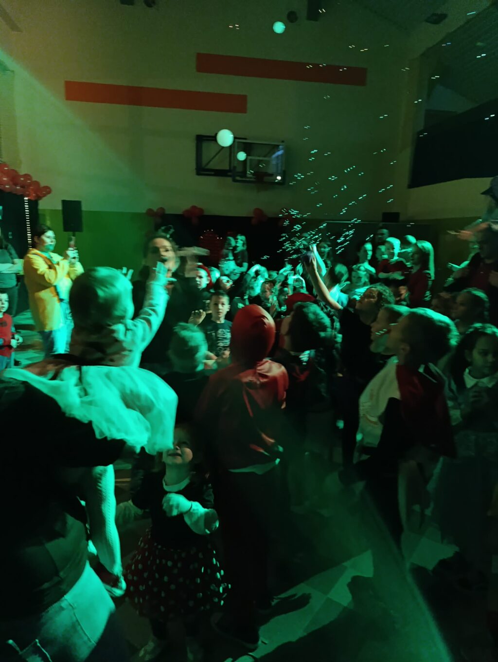Szczególną atrakcją były bańki, które unosiły się nad parkietem, tworząc bajkową atmosferę i wywołując zachwyt zarówno wśród młodszych, jak i starszych uczestników. Przede wszystkim ogromnym zaskoczeniem było wchodzenie do ogromnej bańki.
