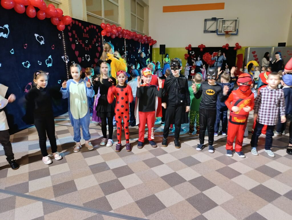 W minioną sobotę nasza szkoła zamieniła się w prawdziwą krainę magii i fantazji. Wszystko za sprawą długo wyczekiwanego balu walentynkowego, który dostarczył przedszkolakom i uczniom mnóstwo radości, śmiechu i niezapomnianych wrażeń. Szkolne korytarze wypełniły się niezwykłymi postaciami. Wśród uczestników podczas pokazu mody można było spotkać księżniczki, superbohaterów, sportowców, zwierzątka i wiele innych. Kreatywność uczniów oraz wsparcie rodziców w przygotowanie strojów była naprawdę imponująca!