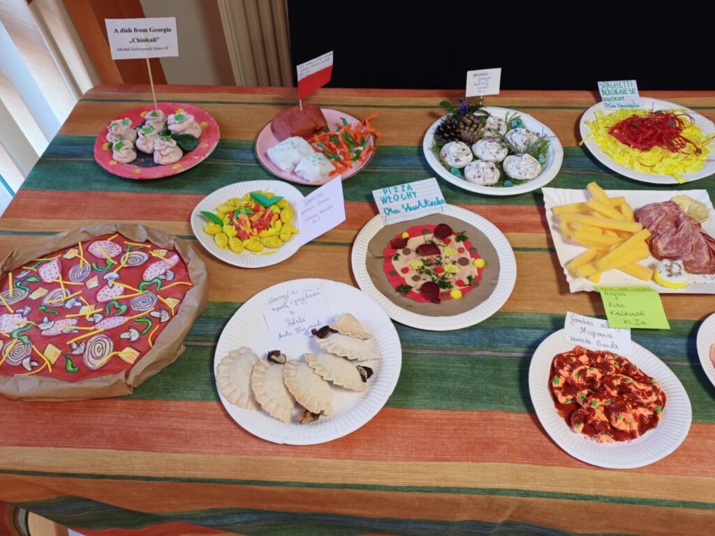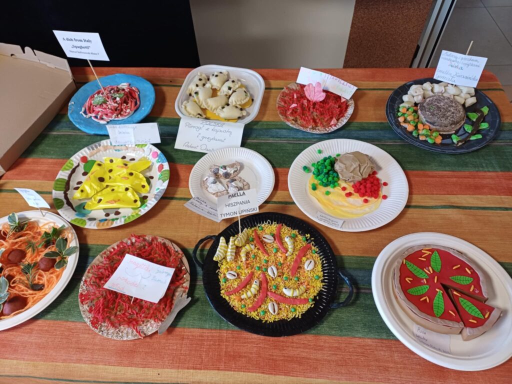 Na deser odbył się konkurs plastyczno-językowy „Smaki Europy”. Uczniowie, uzbrojeni w kleje, kartony, gąbki i inne materiały, stworzyli tak realistyczne wersje potraw z różnych krajów, że niejednemu z nas ślinka pociekła.