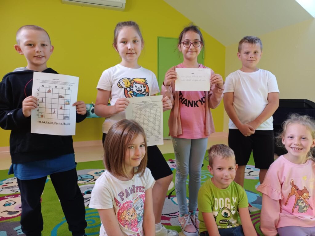 Klasy 4-8 także nie próżnowały – wzięły udział w quizie pełnym ciekawostek o Europie. Były pytania o stolice, języki, tańce, zabytki i oczywiście… jedzenie!