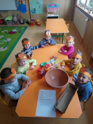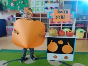 W dniu 31 października grupa Krasnali, czyli najmłodszych przedszkolaków obchodziła „Święto dyni”. Tego dnia dzieci uczestniczyły w wielu zabawach muzyczno-ruchowych oraz matematycznych z bohaterką dnia w roli głównej. Przedszkolaki klasyfikowali dynie według wielkości, koloru i kształtu, szeregowali od największej dyni do najmniejszej, przeliczali je. Dzieci z wielkim zapałem zabrali się również do odkrywania „dyniowego wnętrza”. Każdy z nas zamienił się na chwilę w dynię i zrobiliśmy pamiątkowe zdjęcia.