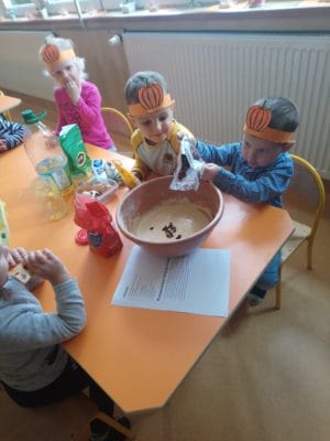 Dzieci miały także okazję przekonać się jak smakuje ciasto dyniowe, które razem z Panią przygotowały. Ten dzień przyniósł wiele niezapomnianych wrażeń.