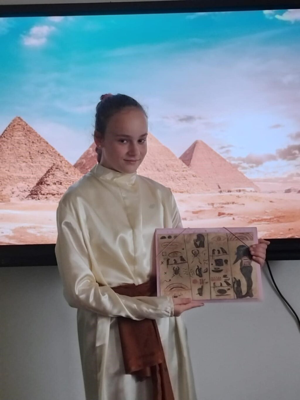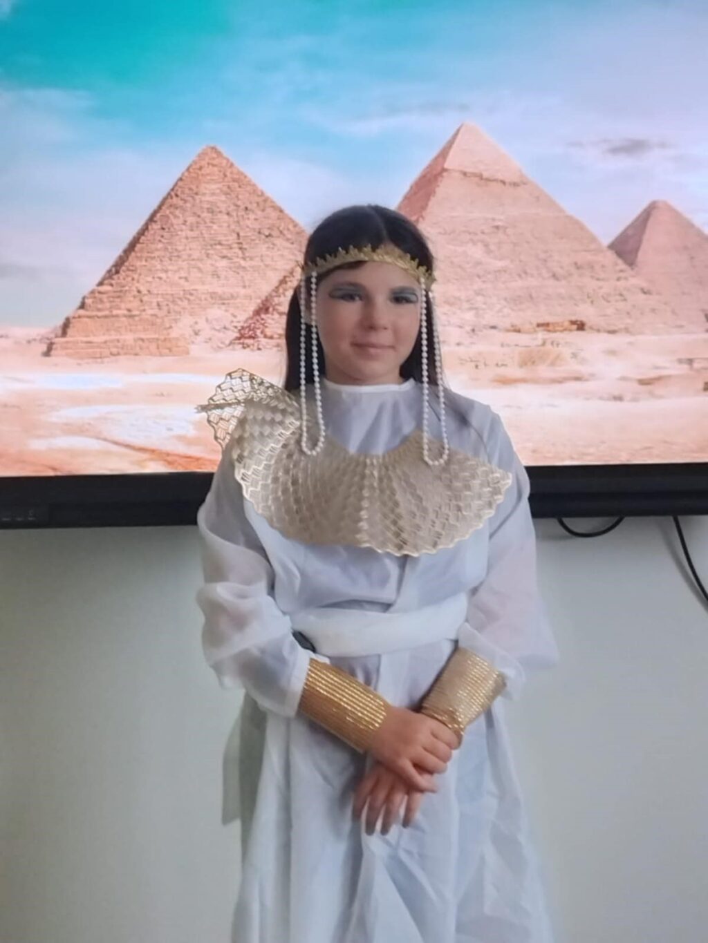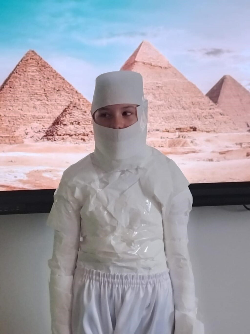 Podczas ostatniej lekcji historii uczniowie klasy V odbyli niezwykłą podróż w czasie. Sala lekcyjna zamieniła się w starożytny Egipt, a dzięki kostiumom i odegranym rolom dzieci przeniosły się do świata faraonów i piramid. Uczniowie wcielili się w różne postacie egipskiego społeczeństwa.