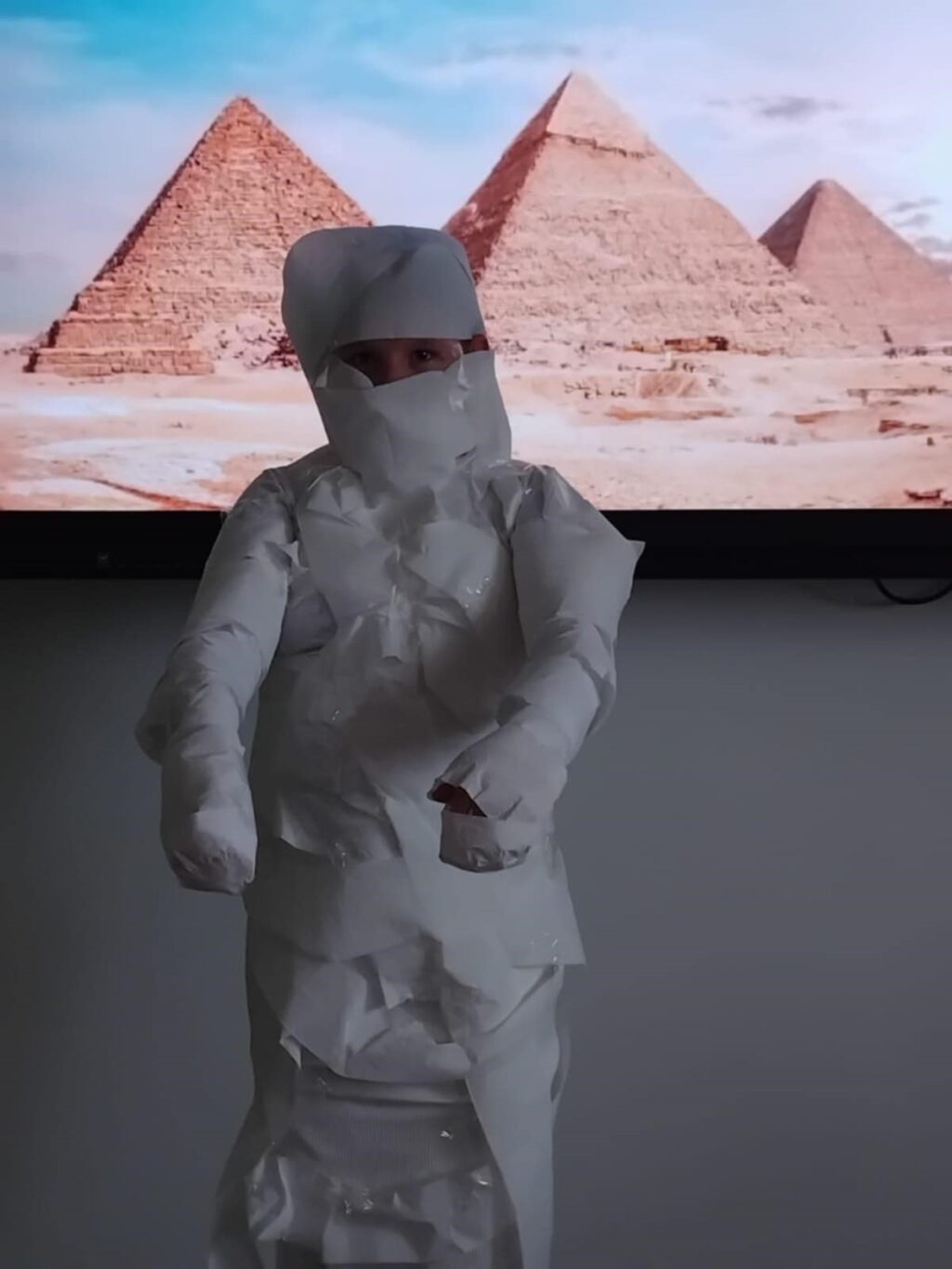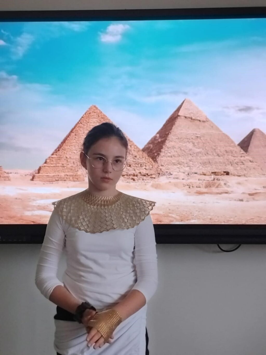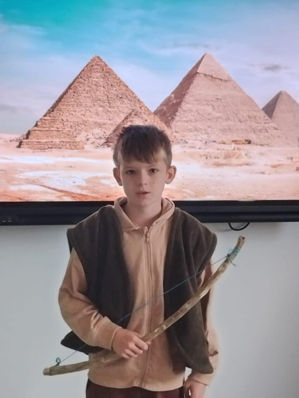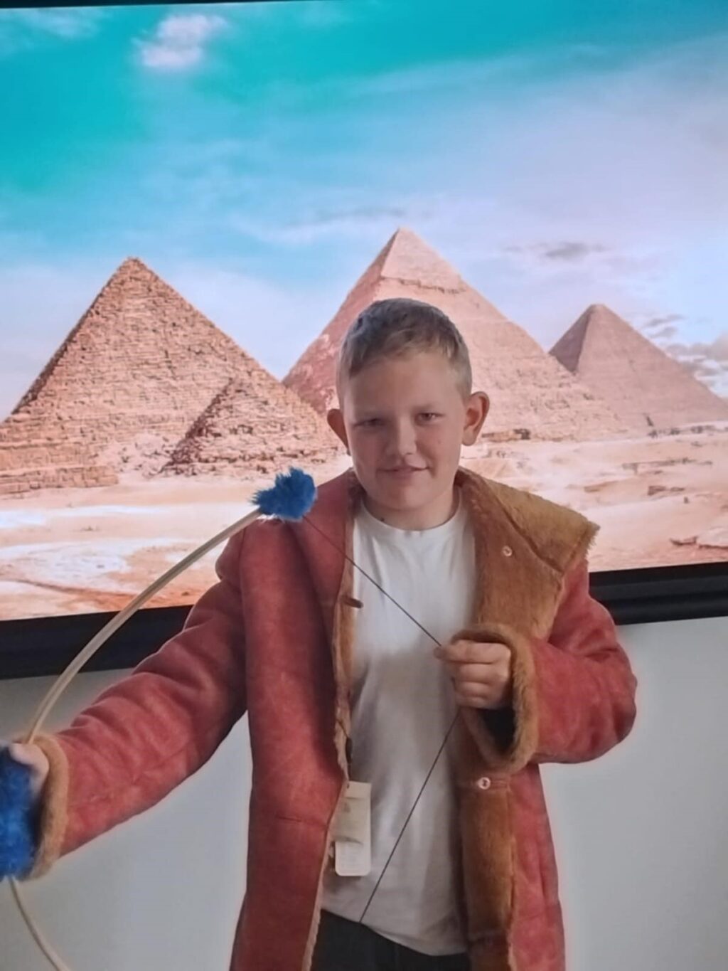 Podczas ostatniej lekcji historii uczniowie klasy V odbyli niezwykłą podróż w czasie. Sala lekcyjna zamieniła się w starożytny Egipt, a dzięki kostiumom i odegranym rolom dzieci przeniosły się do świata faraonów i piramid. Uczniowie wcielili się w różne postacie egipskiego społeczeństwa.