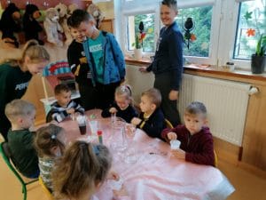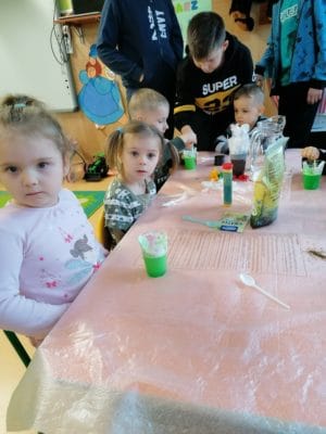 Powszechnie wiadomo, że kredki są najlepszymi przyjaciółmi każdego przedszkolaka. Wprowadzają w świat kolorów, rysunku, rozwijają fantazję i wyobraźnię oraz kształtują małe paluszki. 22 listopada w naszym przedszkolu we wszystkich grupach obchodziliśmy Dzień Kredki. Tego dnia dzieci poznawały różne rodzaje kredek oraz podczas zabawy utrwalały kolory. Wykorzystywaliśmy kredki do rysowania, kolorowania, różnych zabaw rytmicznych i matematycznych. Na koniec dnia odwiedziła nas Pani Asia z klasą 4 i wykonali wspólnie z dziećmi ciekawe, kolorowe eksperymenty i doświadczenia.