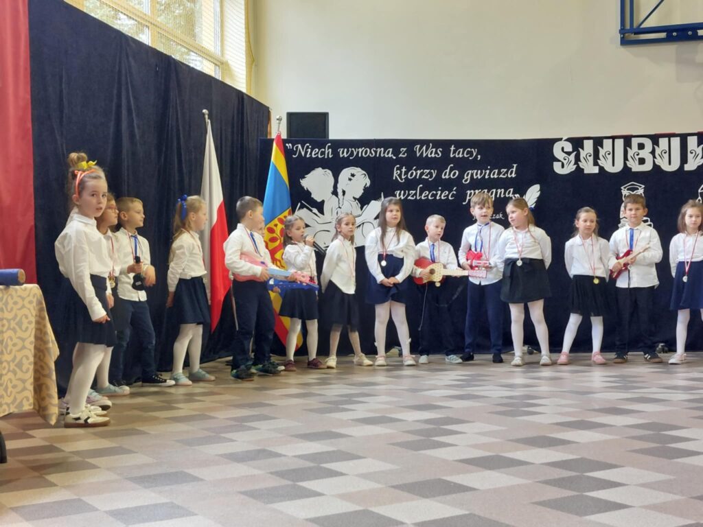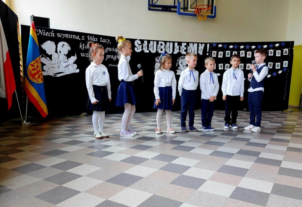 Podczas uroczystości pierwszoklasiści zaprezentowali krótki program artystyczny, pełen piosenek, wierszy i uśmiechu.