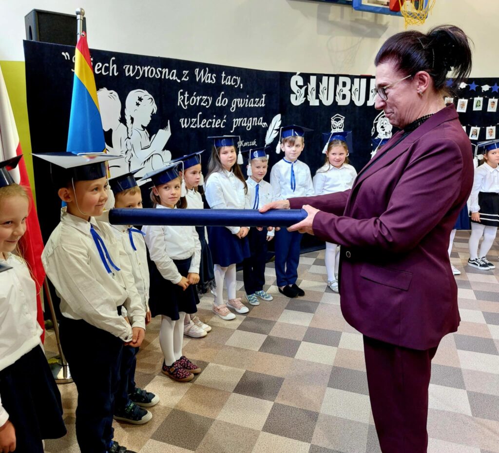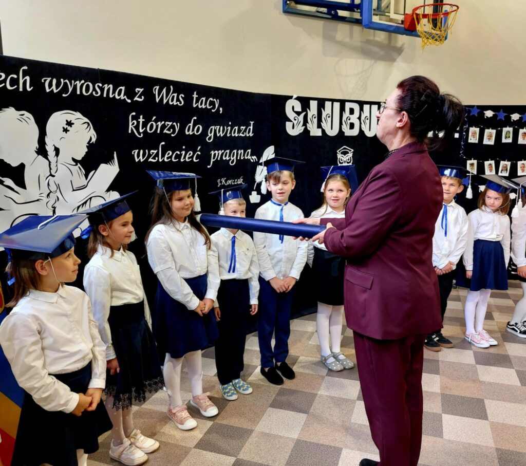 W obecności Wójta Gminy Zbuczyn, Pani Dyrektor, nauczycieli oraz rodziców, złożyli uroczyste ślubowanie i zostali symbolicznie, wielkim ołówkiem pasowani na uczniów Niepublicznej Szkoły Podstawowej w Izdebkach Kosnach.