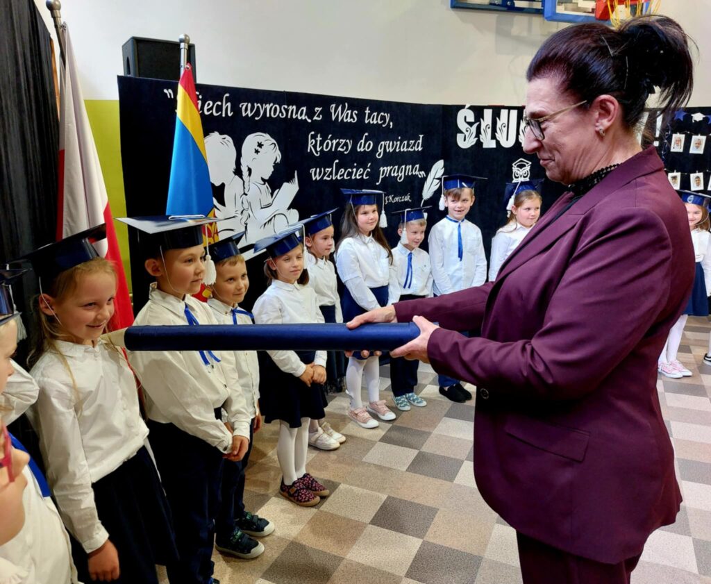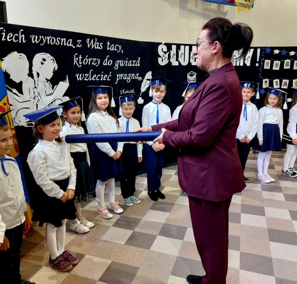 Każdy uczeń otrzymał pamiątkowy dyplom, książkę, globus, grę i worek, który będzie przypominał o tym ważnym dniu.