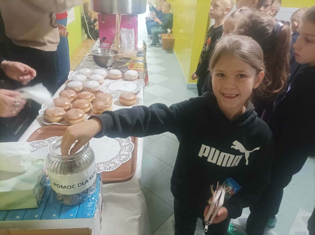• Udział w innych akcjach charytatywnych: zbiórki na rehabilitację Klaudii Radzikowskiej oraz zbiórki puszek, korków, baterii i makulatury