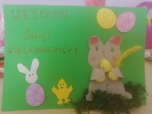 Z okazji zbliżających się Świąt Wielkanocnych zorganizowaliśmy w naszym przedszkolu konkurs plastyczny pt. Kartka Wielkanocna. Udział wzięły wszystkie grupy przedszkolne; Krasnale, Skrzaty i Sówki.