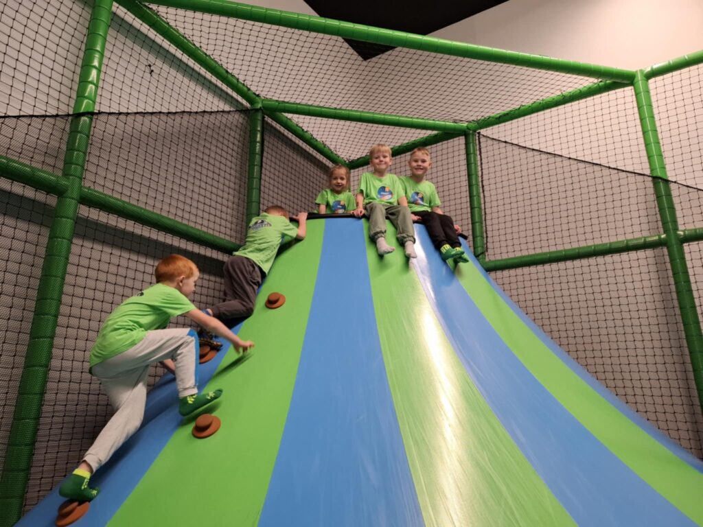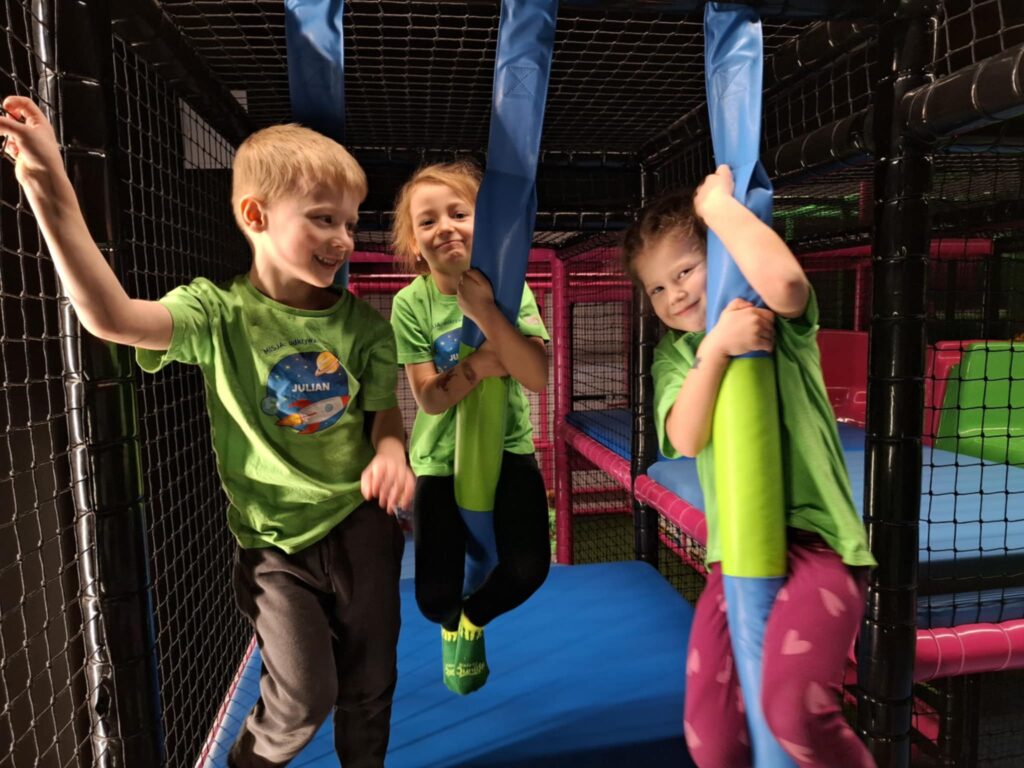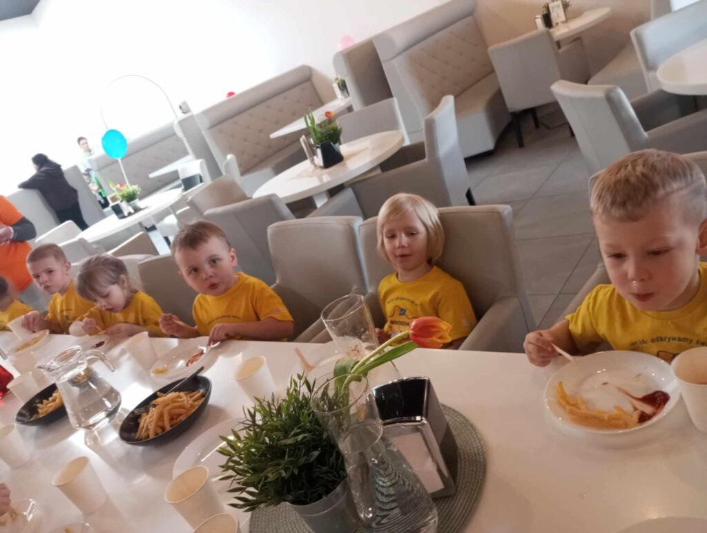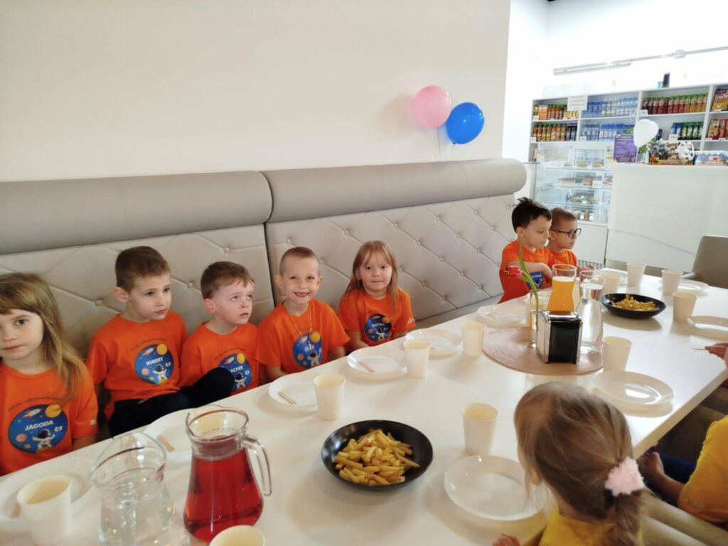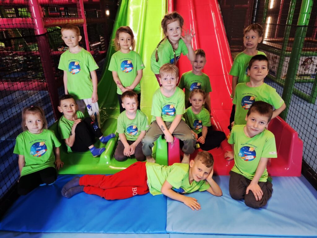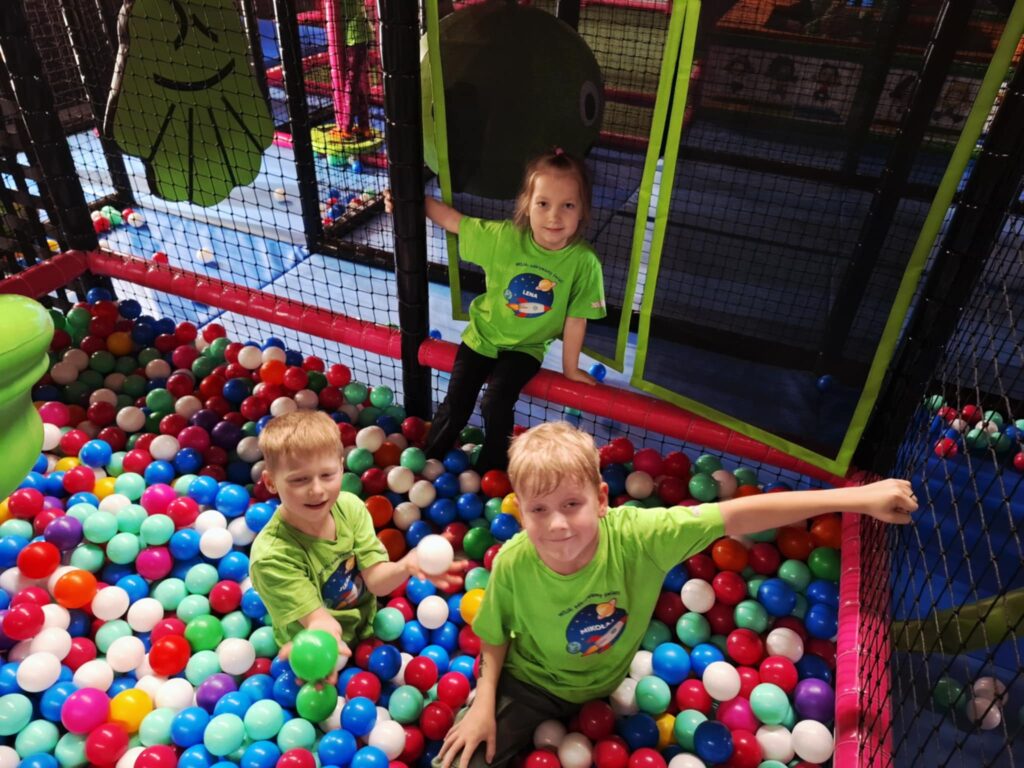 Na miejscu czekało na nie wiele atrakcji, które dostarczyły mnóstwo uśmiechu i pozytywnej energii. Przedszkolaki chętnie korzystały z kolorowych zjeżdżalni, basenu z kulkami czy też ścianki wspinaczkowej rozwijając przy tym swoją sprawność ruchową. Po takiej aktywności nie mogło zabraknąć ciepłego posiłku.