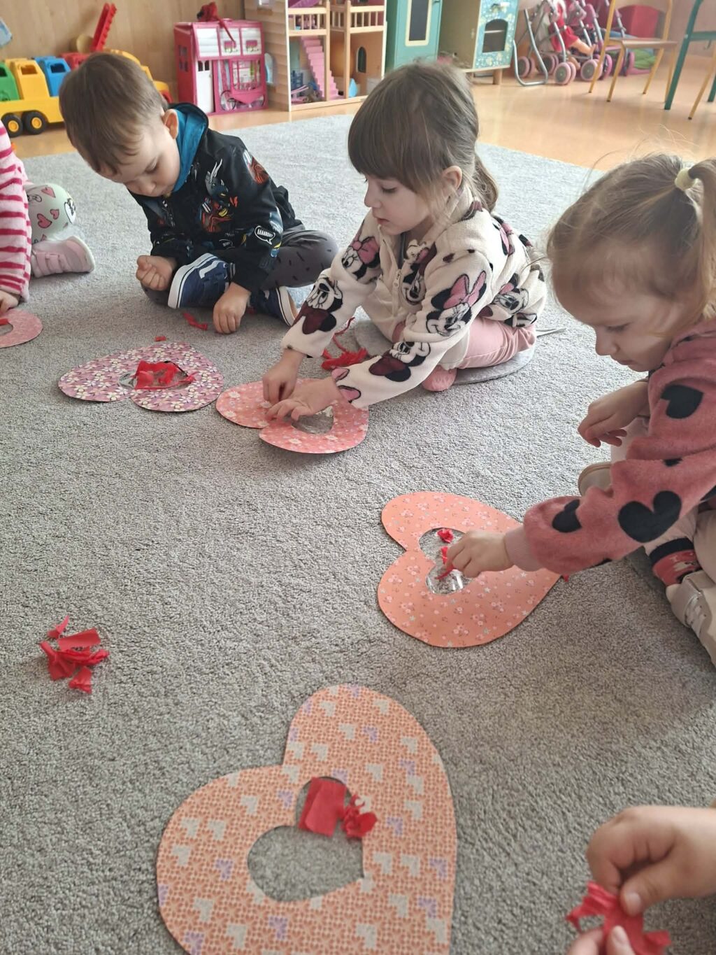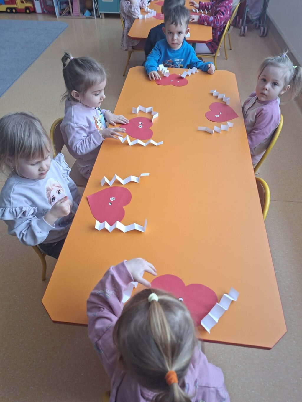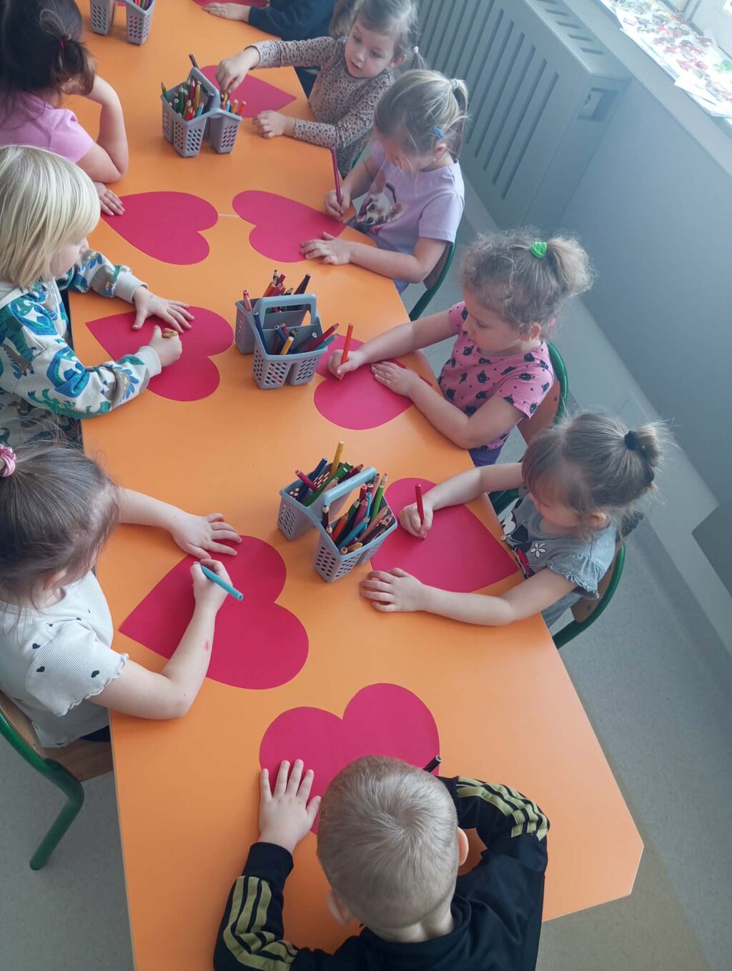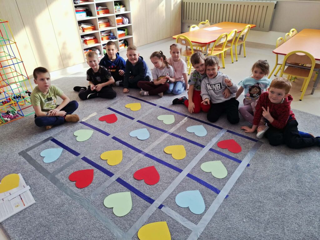 Przedszkolaki z zaangażowaniem tworzyły piękne prace plastyczne – serduszka, kartki walentynkowe i kolorowe dekoracje.