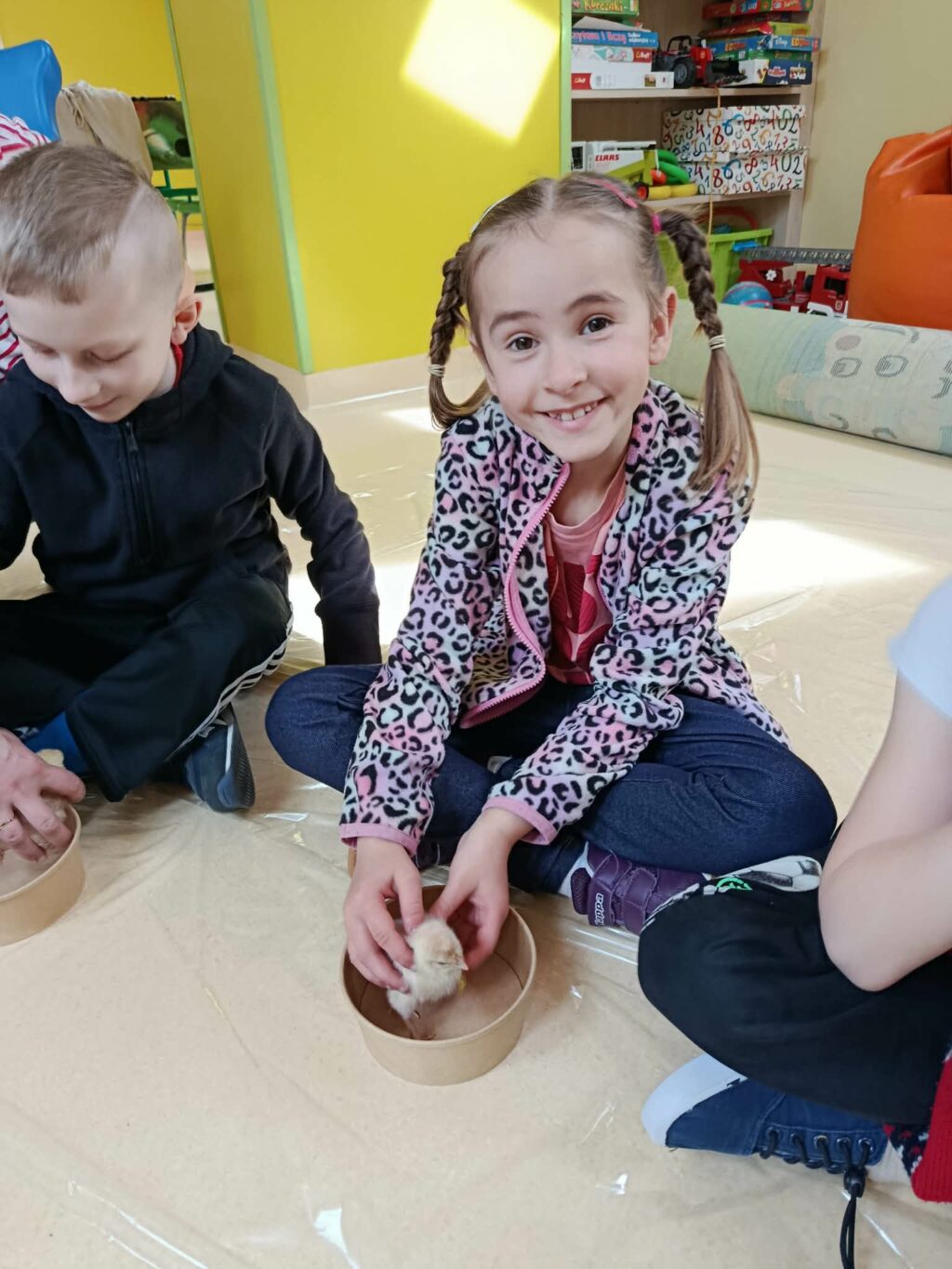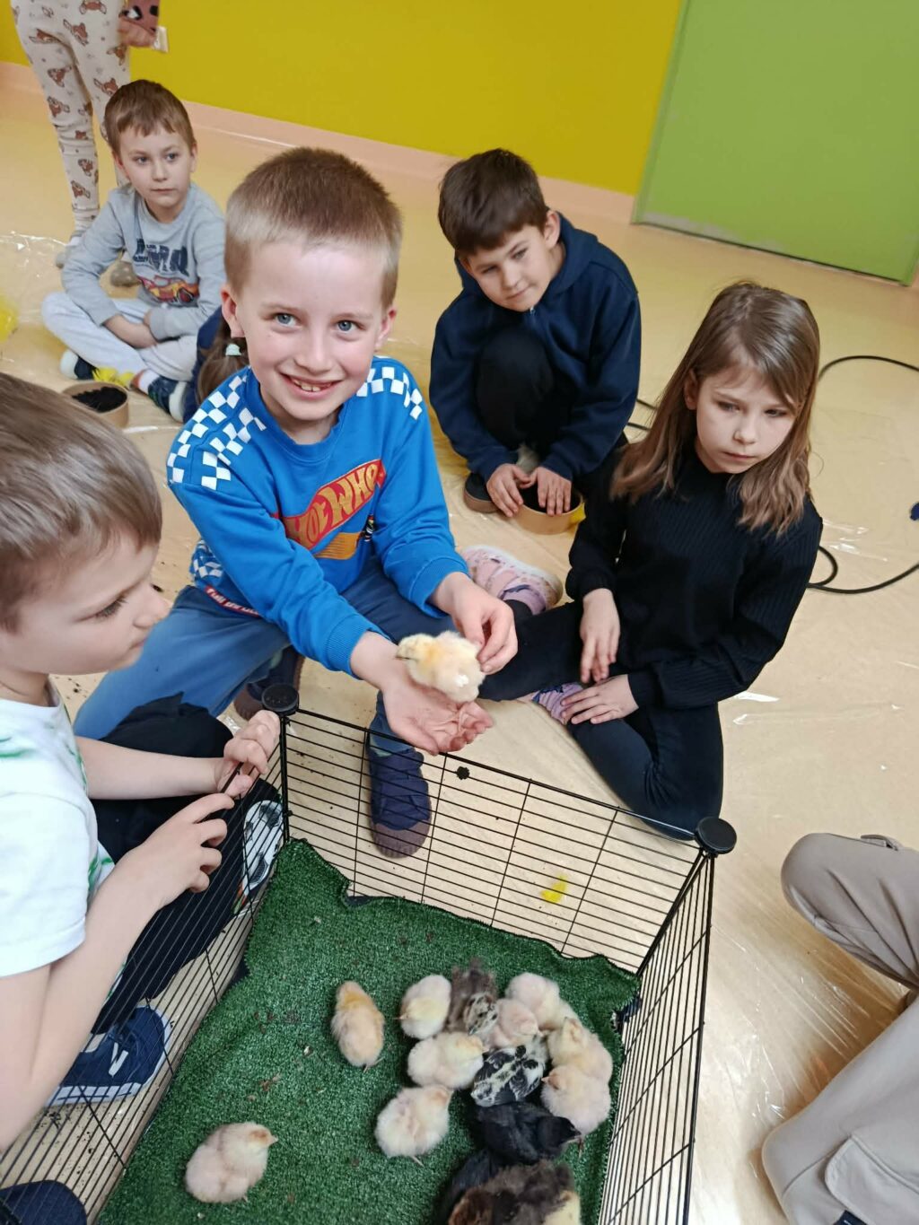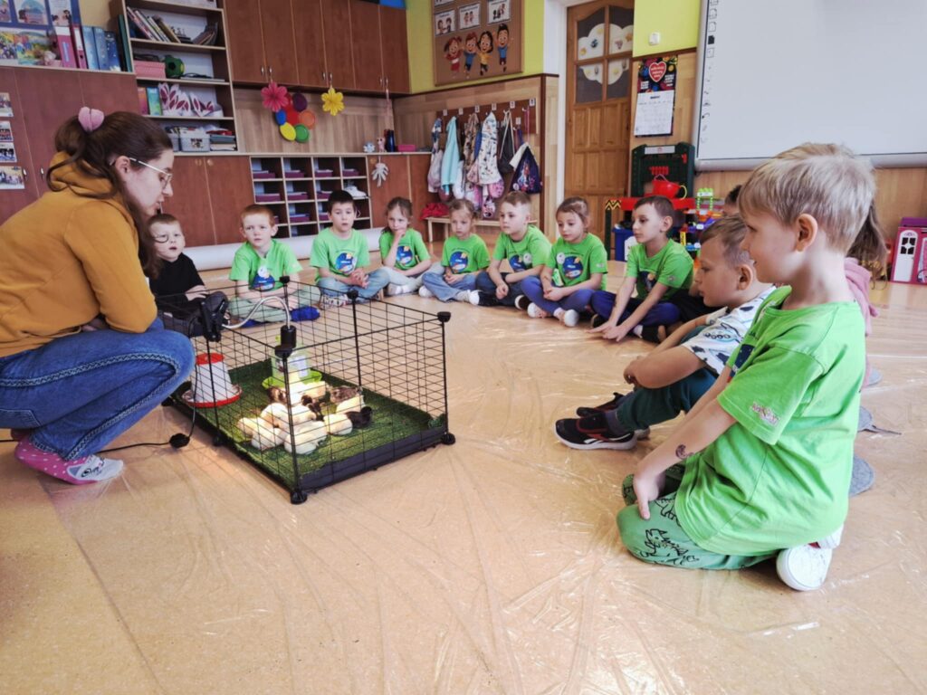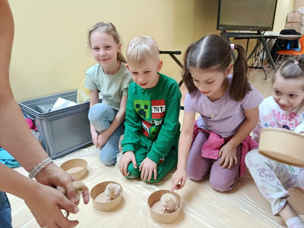 Zajęcia poprowadzone zostały w formie interaktywnych warsztatów, dzięki czemu dzieci mogły nie tylko obserwować zwierzęta, ale również dowiedzieć się, jak wygląda ich rozwój, jakie mają potrzeby oraz jak odpowiedzialnie się nimi opiekować. Uczniowie i przedszkolaki z dużym zainteresowaniem słuchali ciekawostek o życiu kur, ich zwyczajach i roli w gospodarstwie. Dzięki bezpośredniemu kontaktowi ze zwierzętami przedszkolaki i uczniowie mogli lepiej zrozumieć, jak ważna jest troska o żywe istoty i środowisko naturalne. Każdy uczestnik warsztatów miał okazję oswoić małego kurczaczka oraz zadbać o jego bezpieczeństwo.