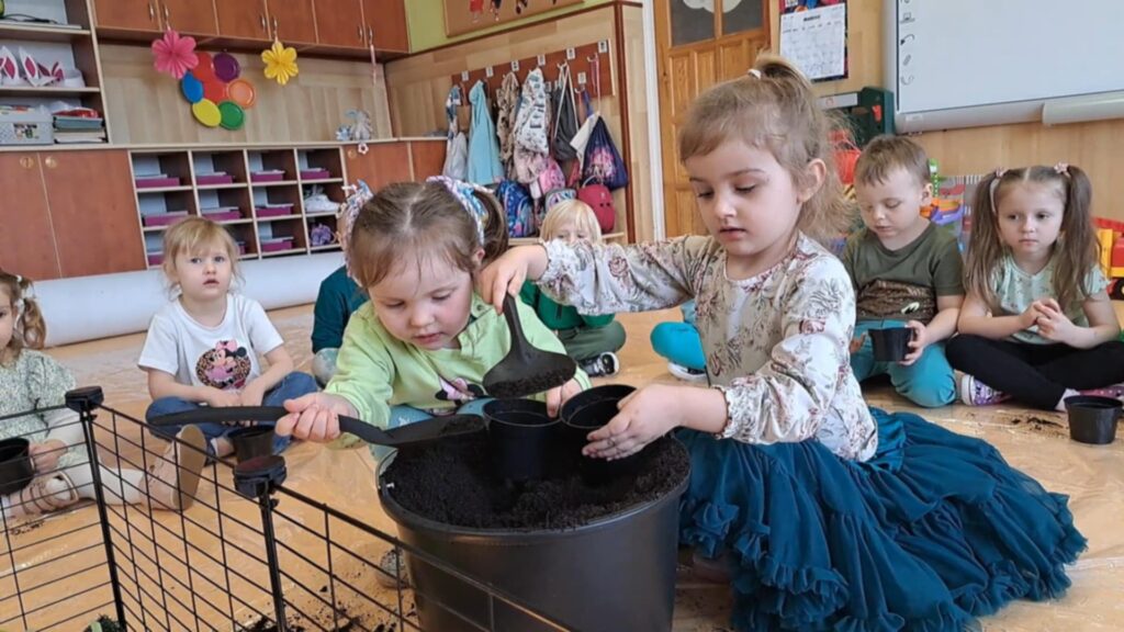 Na podsumowanie warsztatów każdy uczeń posiał własny pojemniczek owsa. Było to symboliczne nawiązanie do wiosny oraz okazja, by dzieci mogły samodzielnie obserwować wzrost roślin i uczyć się cierpliwości oraz systematyczności.
