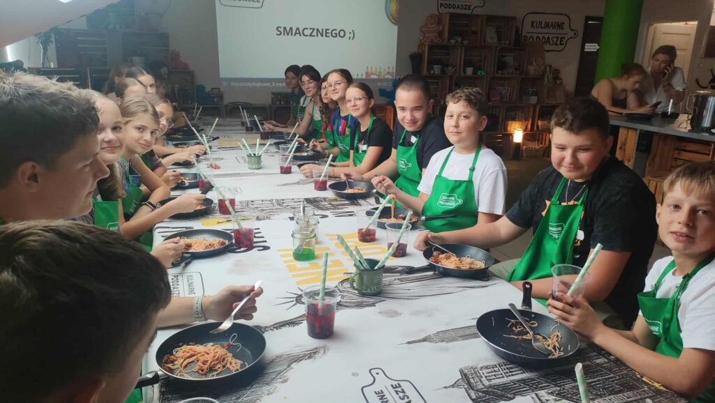 A potem… przeszliśmy do najprzyjemniejszej części dnia – Kulinarnego Poddasza! Tam nasze kubki smakowe miały prawdziwe święto. Pyszności aż brakowało miejsca na talerzu, a uśmiechy na twarzach mówiły same za siebie.